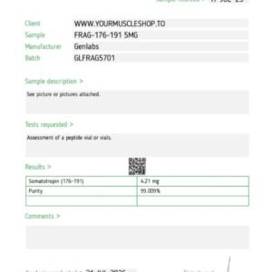 FRAG 176-191 5mg is a peptide fragment known for its potential to promote fat loss and weight management. With its ability to target stubborn fat areas and promote lipolysis, it offers a focused approach to achieving a leaner physique.