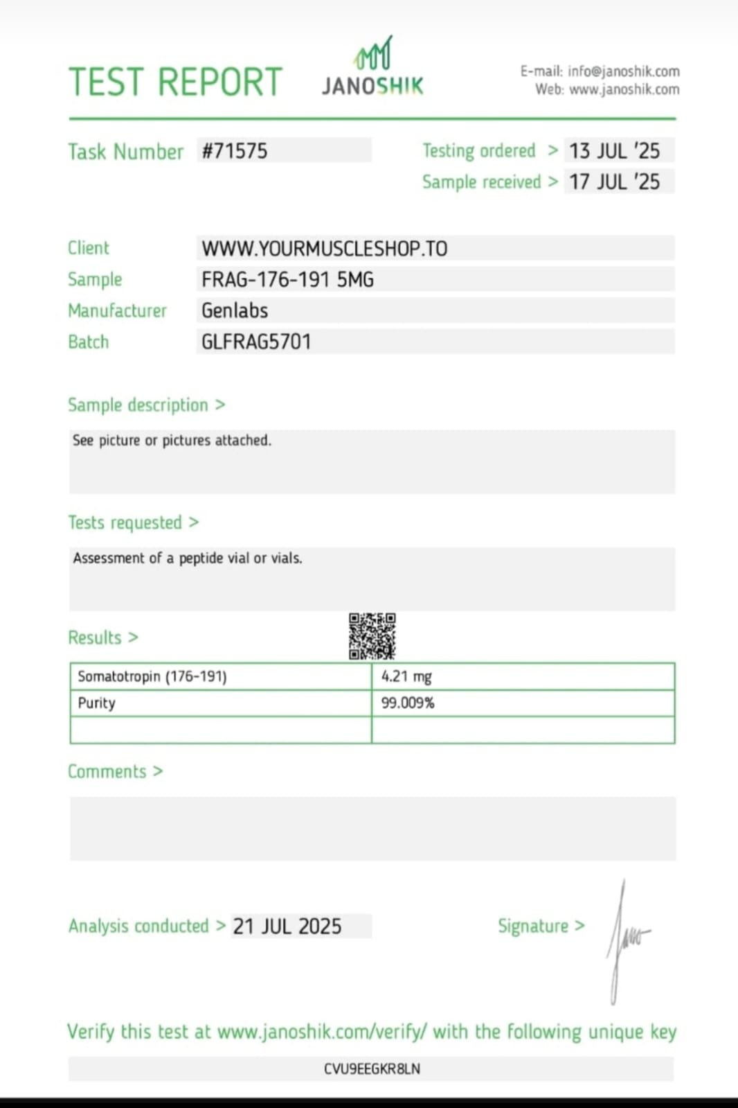 1 VIAL – 5 MG FRAG-176 ( DRIED FREEZE POWDER )